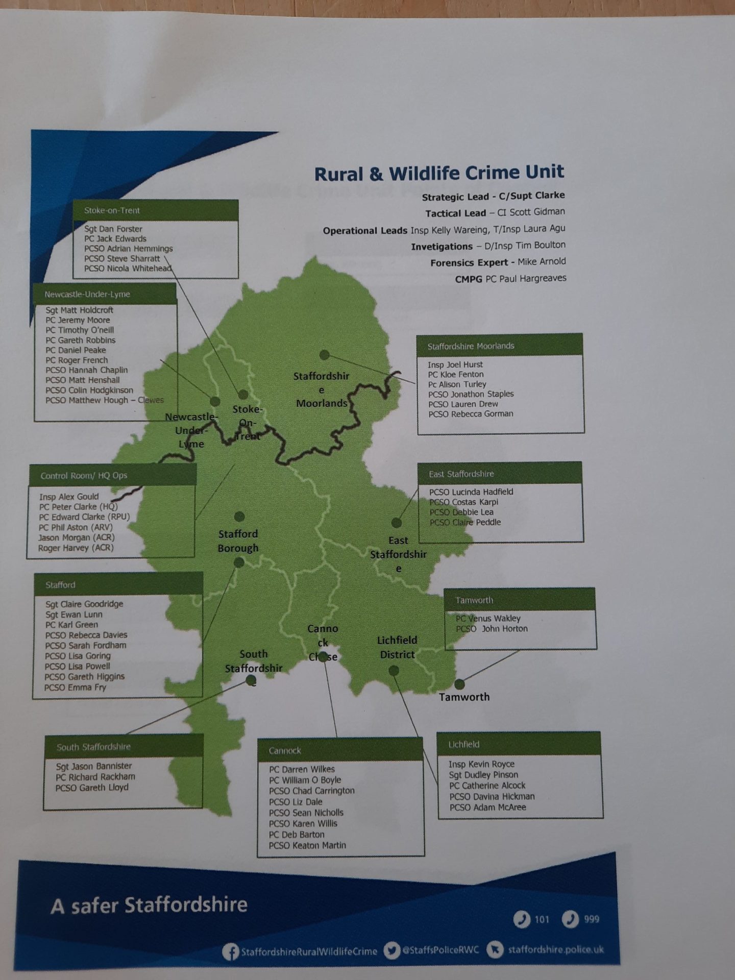 Rural and Wildlife Crime Police Contacts in Staffordshire